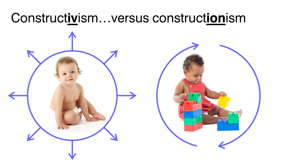 This is why Seymour Papert, who wrote Mindstorms in 1980, replaced the term “constructivism” with “constructionism”. The difference lies in what you are constructing. In constructivism, you are constructing knowledge. In constructionism, you are constructing a robot, a computer program, a song, whatever. As you do that, you find that you are also constructing your “intellectual structures” (just as Professor Mazur explains the process). But there is a big difference between constructing intellectual structures (or “belief” for short) and constructing knowledge. Constructionism takes the interactivity and discovery from Papert, but rejects the child-centred relativism.
