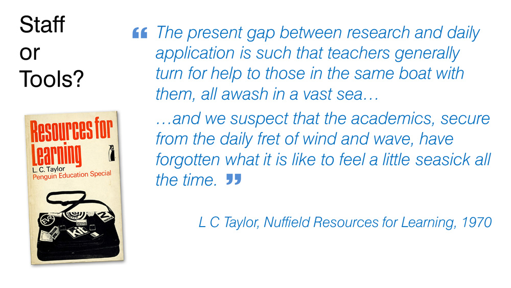 And this has been part of the problem. David Brown, who gave the keynote this this morning, has no remit for education technology: he is a subject inspector. NAACE is a subject association. In every school up and down the country, the requirement for education technology has been seen through the lens of – and confused with – one particular subject on the curriculum.