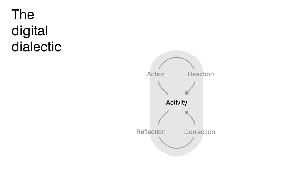 Papert’s microworlds proposal is one specific example of a general approach to activity based learning—an approach in which the learner performs an action and some “other” provides a reaction. The “other” could be a physical object, an environment, a peer, a teacher, or a computer program (see my In the beginning was the conversation, for the full argument here).
