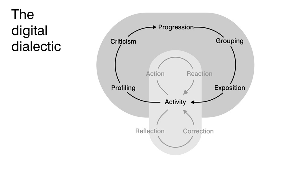 Nor does the promotion of self-directed learning necessarily increase the amount of interactivity experienced by the learner—points 2 and 3 often seem to work against each other—and not only because the self-directed learner might prefer to slouch on the sofa with a large packet of crisps, but because the self-directed learner does not know what they would best be doing, or how to do it.