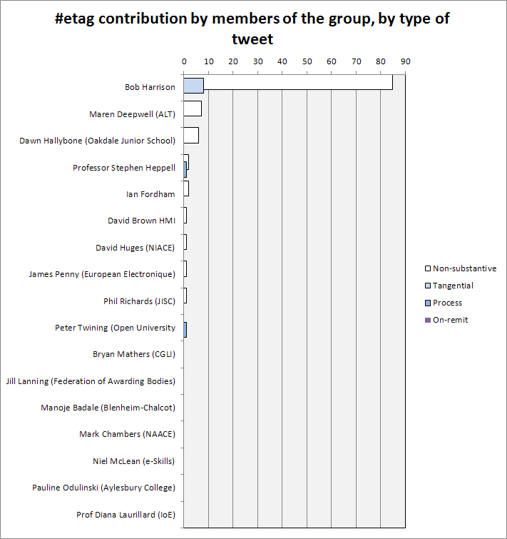 Because the true “disruptive technology” that ETAG was tasked with considering lies in the future, not the past, because this is something that even Pearson only “envisages”, there is no empirical evidence to collect. When considering what to do next, it is not so much evidence that is required, as a priori reason and rigorous discussion. To this task, the medium of Twitter has (predictably enough) proved to be wholly inadequate.